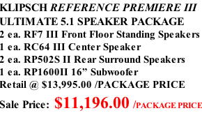 m.RADIOCRAFTS RP-1600SW_Spec-Sheet_v01.pdf RC-64-III_Spec-Sheet-v02.pdf RF-7-III_Spec-Sheet-v02.pdf RP-502S-II_Spec-Sheet_v02.pdf SAVE $2800.00 RP-8000F-II_Spec-Sheet_v02.pdf RP-1400SW_Spec-Sheet_v01.pdf RP-502S-II_Spec-Sheet_v02.pdf RP-504C-II_Spec-Sheet_v02.pdf SAVE $1480.00 RP-6000F-II_Spec-Sheet_v02.pdf RP-1200SW_Spec-Sheet_v01.pdf RP-502S-II_Spec-Sheet_v02.pdf RP-404C-II_Spec-Sheet_v02.pdf SAVE $1240.00 RP-1000SW_Spec-Sheet_v01.pdf RP-600M-II_Spec-Sheet_v02.pdf RP-500C-II_Spec-Sheet_v02.pdf RP-502S-II_Spec-Sheet_v02.pdf SAVE $876.00 RP-1000SW_Spec-Sheet_v01.pdf DS-160CDT-Spec-Sheet.pdf DS-160CDT-Spec-Sheet.pdf KLIPSCH REFERENCE 5.1 IN-WALL SPEAKER PACKAGE 3 ea. PRO-160-RPW In-Wall Front & Center Speakers 2 ea. DS160C II In-Ceiling Rear Surround Speakers 1 ea. RP1000 II 10” Subwoofer Retail @ $3584.00 /PACKAGE PRICE Sale Price: $2868.00 / PACKAGE PRICE SAVE $716.00 THX-504-L-Spec-Sheet.pdf RP-1200SW_Spec-Sheet_v01.pdf SAVE $1300.00 RP-502S-II_Spec-Sheet_v02.pdf KLIPSCH GALLERY PREMIERE WALL MOUNT 5.1 SPEAKER PACKAGE 3 ea. RP-640D Flat Panel Speakers 2 ea. RP-502S Rear Surround Speakers 1 ea. RP1200 II 12” Subwoofer Retail @ $5645.00 /PACKAGE PRICE Sale Price: $4515.00 / PACKAGE PRICE SAVE $1130.00 RP-1200SW_Spec-Sheet_v01.pdf AUTHORIZED SERVICE AND REPAIR CENTER FOR SOUTHERN ALBERTA KLIPSCH SPEAKER PACKAGES Hours Of Operation: Monday - Saturday - 10:00am - 5:30pm